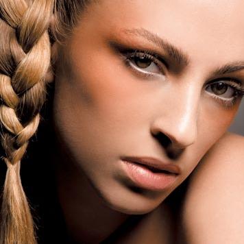 选择橙色系的腮红,用大号化妆刷先大面积地轻扫打底,让颧骨和眼睑部位自然地呈现一个弯月状区域。然后用小号眼影刷在眼睑处描画出渐变的层次感。