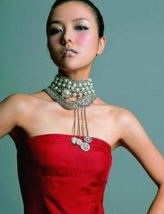 用含有大少不同颗料的粉饼,轻扫上面颊,以突出面部轮廓。唇红腮红用大号扫,从两边鼻翼往眼尾轻拉,使脸型显瘦,