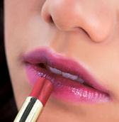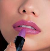 STEP 1 : 整体均匀涂抹上冷色调唇膏 选择色彩感突出、但质地轻薄的紫红色唇膏,沿着唇部轮廓,均匀涂抹整个唇部。