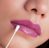 用棉棒沿着唇部轮廓线轻轻擦拭,淡化轮廓线条,重点是两侧的位置,实现自然效果。