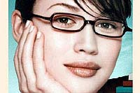 不要太强调唇彩,使用雾色系口红。由于镜框给人的印象已经够强烈了,所以唇部只要稍微修饰即可。