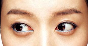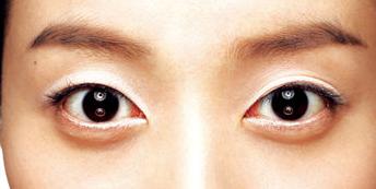 2.在单眼皮上面要用白色系列的颜色的话,会很容易被误会成是眼睛肿了。所以,先抹粉色系列的眼影然后在上面再抹上白色眼影。最后在眼睛下面用白色眼线笔画上眼线就可以让眼睛看起来更大更圆。