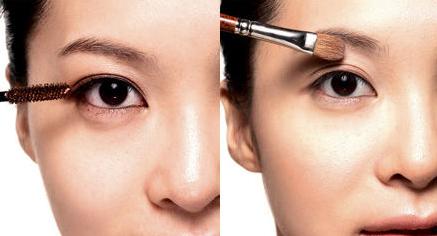 3.用棕色睫毛膏涂在睫毛上,从眼睛中间到眼尾部位的睫毛用睫毛膏再仔细地涂一遍,使得睫毛看起来更长更丰密,这样能使眼神看起来更加有神妩媚。