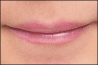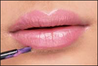 Step1用唇刷修整出弧度优美的唇部外轮廓,增加双唇丰盈度。