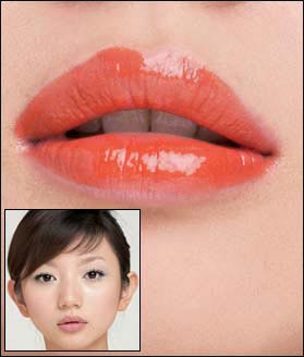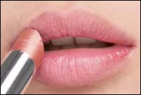 Step2 用唇膏平行于唇线内侧仔细涂抹。