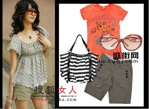 趣味T恤+工装风格的五分裤