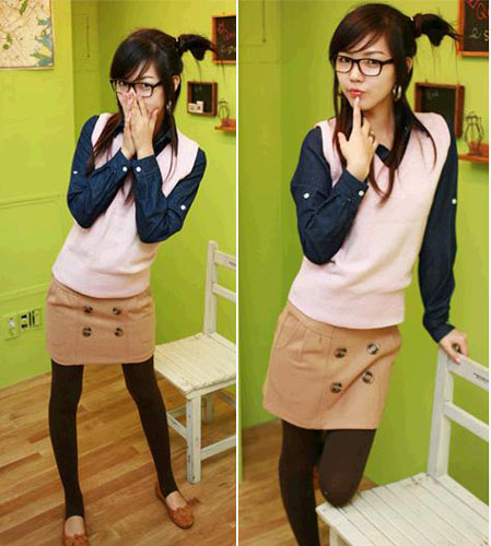 女生黑框眼镜+丝袜的绝色搭配