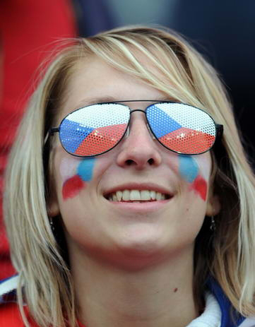 2008年6月15日,2008年欧锦赛A组第3轮,捷克vs土耳其,球迷为比赛造势。 欧洲杯流行彩绘眼镜。