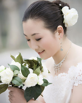 粉色妆容着重表现俏皮可爱、清新甜美的气质,呈现出柔美、雅致、更惊喜的年轻气息。自然光彩的肤质,加上洋溢着幸福味的桃色或橘色双颊,不仅保留了传统的古典美,也将新娘本人的个性美完全展现出来。
