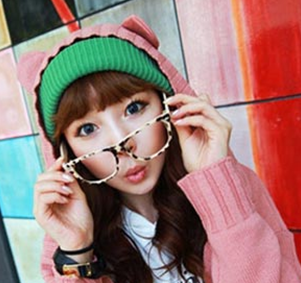 如果你想突出你的眼睛,你不妨像以上那样操作。眼镜妆容的另一极端的范本:极简。几乎没有任何修饰的眼妆,卷翘的睫毛似乎都看不见睫毛膏 的踪迹,只有眼睑上稍稍涂抹了一些珠光眼影,将眼镜作为眼睛的一部分,和眉毛一起妆点五官,似乎也不错,戴眼镜的你可以借鉴看看。