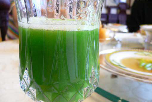 材料:胡萝卜6条、芥蓝或芥菜或荷兰芹一大把 作法:胡萝卜去头尾,切成2到3寸长条状后,连同绿色蔬菜放入榨汁机榨汁。 注意:芥菜含有辛辣的挥发油,仅用少量即可。