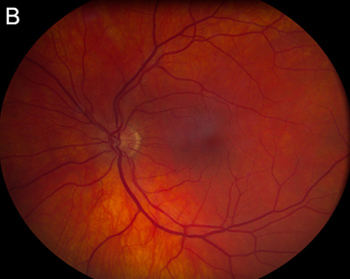 A)虹膜睫状体切除术后,患者发生术后性张力降低,导致脉络膜渗出,视神经肿胀。低眼压性黄斑病变与暂时性术后视力下降有关。