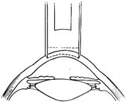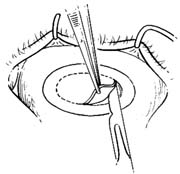 制作移植床 开睑器开睑,上下直肌固定缝线,可用任一种用于穿透性角膜移植的环钻划界,植床直径一般为7.5~8mm。在角膜中央区钻刻0.3~0.4mm深度。