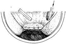 存在增殖性玻璃体视网膜病变时,应先松解及切除向心牵引,然后切除切丝牵引及剥离视网膜前膜。
