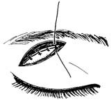 空腔内注入少许抗生素。摘下的泪腺应送病理切片。分层缝合,眶隔用6-0缝线缝3~4针,眼轮匝肌缝2~3针,皮肤用3-0缝线缝4~5针。用绷带轻轻加压包扎。