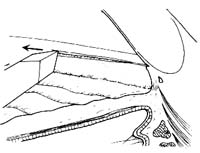 术者应在刀尖之后看到切口。此时可见到虹膜根部向后退缩,局部前房增宽,切开组织为一淡灰白色的组织分界线。