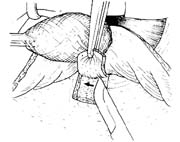 助手用镊子夹住巩膜瓣边缘,轻轻地向瞳孔侧牵拉。术者用锐刀尖先做两条间隔约为1.5~2mm,从角巩膜缘前界至其后界的平行巩膜切口。