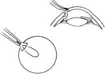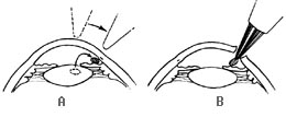 前房角异物 正对异物所在位置,在角膜缘内1mm处作一向前房角偏斜的切口,同前房异物吸出术将异物摘除。
