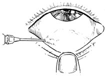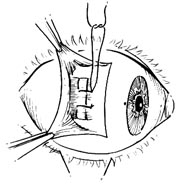 将剪断之眼外肌复位缝合,眼球筋膜、结膜对位缝合。术毕结膜下注射抗生素及激素,滴1%阿托晶液,涂抗生素眼膏,双眼包扎。