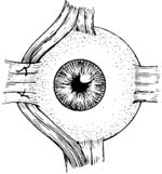 jackson为解决第ⅲ颅神经麻痹的手术方法是,折断滑车间将一小段上斜肌肌腱缝在靠近内直肌的巩膜上(图3)。