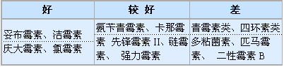 3、药物的眼内通透性及级药途径 (1) 眼内通透性: 选用的药物应在感染部位达到有效治疗浓度,并存留一定时间,才能发挥抗菌效能。血-眼屏障和角膜上皮的存在使抗菌药物在眼内的应用具有一定特殊性。为此,必须熟悉各种药物的眼内通透性,以便准确选用有效的药物和恰当的给药途径,从而保证在感染局部达到有效的治疗浓度。(见表三) 表三 抗菌药物的眼内通透性