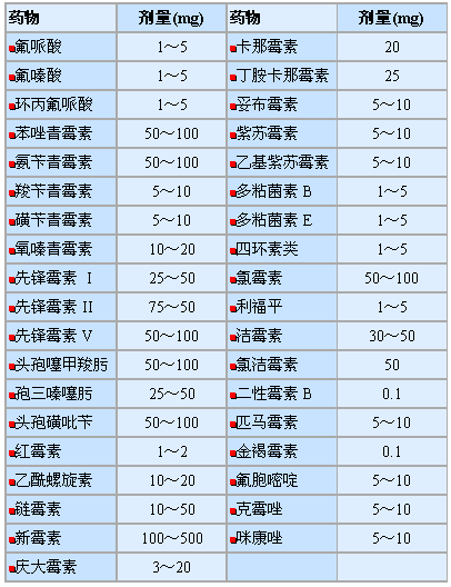 表四 抗菌药物结膜下注射剂量