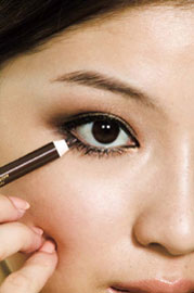 8.在下睫毛根部描绘内眼线 使用B棕色眼线笔从2/3处开始描绘到下眼尾,画时越接近下睫毛根部越好。