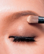 2. 沾取带有光泽感的咖啡色眼影层迭于眼窝处,让眼型藉由深色眼影有放大效果。