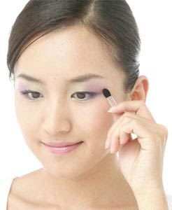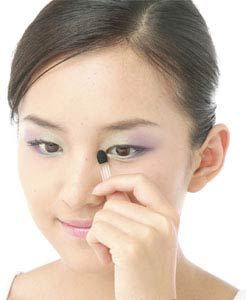 1.从外眼角分别往上下眼皮的中部涂抹,涂外眼角时,可以加重涂抹!