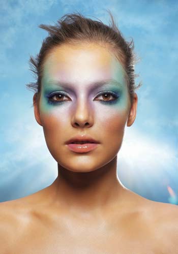 化妆技巧: 1. 在小眼的眼窝上眼影时,稍微化的高一点,藉以调整眼睛的纵幅。 2. 在上小眼的上眼线时,中央部份稍微加粗,让眼睛的纵幅看起来较长。 3. 大眼的化妆则根据与小眼的平衡来调整。眼线稍微比小眼细一点、眼影的高度也随之调整。 4. 接着以黑色眼线来调整下垂小眼的眼尾,眼线的长度稍微比正常眼长一些。 5. 此时从镜子中检视一下两眼的平衡感,若两眼张开时形成良好的平衡,表示OK。 6. 最后刷上睫毛膏。在小眼中央部份的睫毛特别加强,有让眼睛看起来较大的效果。眼部问题:右眼宽度较窄、左眼黑眼珠下方露出眼白(三白眼)化妆技巧: 1. 两眼双眼皮内的眼影采用深色、宛如眼线般,用细线条的方式上色。 2. 右眼的上眼线在眼尾处拉长,记住平行的拉长即可,不需要上扬。采用棕色的眼线会比较自然。 3. 三白眼的左眼下眼线,在黑眼珠下方尽量靠近眼球来化,在视觉上化解黑眼珠下方的留白。 4. 右眼的下眼线则稍微补一下睫毛间的间隙即可,视与左眼的平衡来调整。