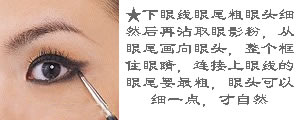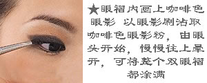 利用小烟熏修饰、拉成长眼型,小烟熏的眼影式画法,选了咖啡色系的眼影来画. 将眼影拿出来当眼线使用吧!