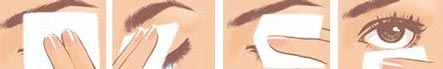 2.把棉片折成L型,包住睫毛2-3秒,再从内向外卸除睫毛膏。