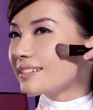 特别提示: 将腮红轻扫在鼻尖与耳垂下部的延长线上方,可以令整个妆容显得年轻而充满活力。