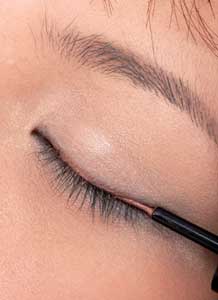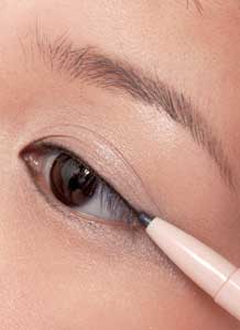 4.画上眼线 贴合着睫毛根部描画眼线,在眼尾处画出眼线上扬的效果。