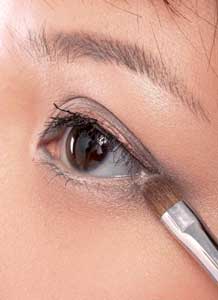 8.补刷眼影 用与眼线液相同色调的眼影,在眼尾及下眼睑处涂抹。