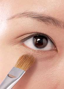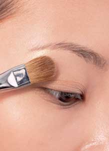 1.打亮眼窝 使用带珠光的粉底打亮眼窝,便于上眼影色并使色彩更鲜明。