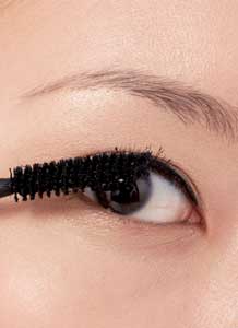 5.先刷睫毛梢,再从睫毛根向上刷。睫毛根处浓,睫毛梢一笔带过。