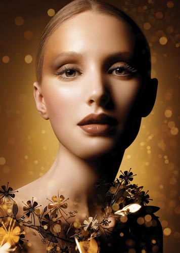 在金色的面纱下掩藏着迷人的优雅,成熟和知性。她懂得利用低调的诱惑去展现出自己的最佳魅力。高贵的身份和高雅的举止又进一步放大了她的吸引力。也许这正是人们心目中的女神缪斯…她的出现伴随着智慧的语言,她高贵的存在营造迷人的氛围。身着时尚的服装,充满自信,在一年之中最重要的夜晚,她将自己的美散发到极致。这是一个极度奢华和丰富的时刻。她的优雅在金色中发光,反射出水晶的光芒,她被隐藏的魅力衬托出她的光辉。植村秀将这种被投射的美丽呈现于一场高端和知性的圣诞晚会之中,来庆祝这个独特和奢华的神圣夜晚。
