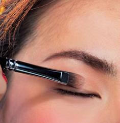 因为眼部选择冷色调红色,所以整体用有对比感并靠近肤色的浅金色打底,带来微妙的冷暖变化 细腻的粉质,淡雅的暖金色系,实现自然妆效。