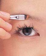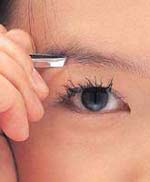 2.拔眉时把皮肤拉平,然后一根一根地拔眉毛,用眉钳夹紧眉毛的根部,朝着眉毛的生长方向拔,这样不会把眉骨上的皮肤拉松。
