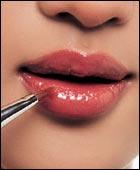 沿着唇线内、唇膏的外边缘,蘸取透明唇彩薄薄涂抹一圈,以奠定红色过渡到驼色,类似山水画般的晕染效果。
