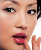 这一步需用手指来完成。用无名指蘸取足够量的红色唇膏,由唇部中央开始,逐渐向两侧和向外点压,一层盖一层,让上下唇保持相同效果,注意不要抿嘴唇。