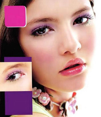 图1:这款粉紫色眼妆,最适合拥有甜蜜长相的洋娃娃女生。很女人,足能迷醉天下所以男士。打造方法很简单,只要从眼睫毛处从下往上轻轻晕开粉紫色的眼影即可。最后在下眼睑靠近内眼角处化出一摸亮色。就大功告成喽。