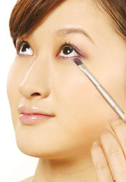 2、呼应上眼睑,贴紧睫毛根部,在眼睛下方也轻轻涂上眼影。