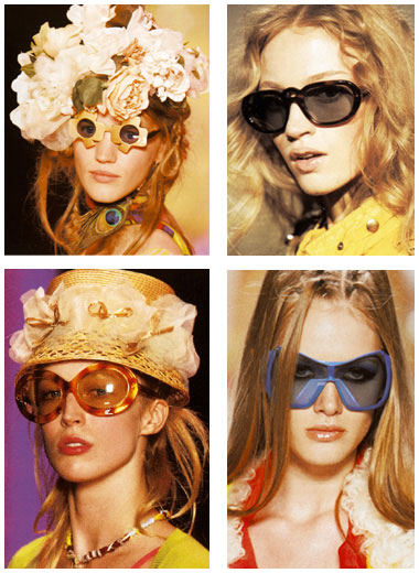 飞行员的航空镜,滑雪运动员的滑雪镜都能在T台上找到影子。J.Calliano的充满浪漫情调的花型眼镜是另一焦点,还有比这造型更古怪的吗?Moschino也设计了很卡通的花边镜框,诙谐可爱。Kenzo的细格子镜框巧妙精致,Miu Miu的超宽镜框独具一格,魅力十足。