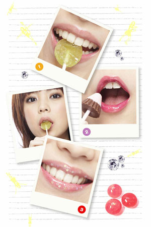 1、颜色饱满晶亮的粉红色唇彩,让人忍不住想一亲芳泽!