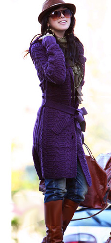 搭配Tips:柔软的面料与粗糙的材质相遇,便是一道“刚柔相济”、温婉与干练相融的视觉“盛宴”,长款毛衣不仅勾勒出女性的完美曲线,又能抵御秋凉,搭配出了层次感,令人耳目一新。