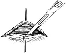 1.切口 在距睑缘2~3mm处作与睑缘平行的切口,切口的两端略超过内、外眦部[图1⑴]。
