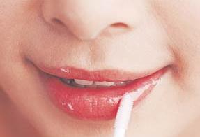 4.最后这可是重点,完成后最好在唇中央,再轻点上透明的唇彩,用手或唇刷轻轻抹匀,增加水嫩光泽的质感。