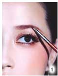 1.以优雅的棕色眉粉和纤细的刷笔画出弧度优美的眉型。
